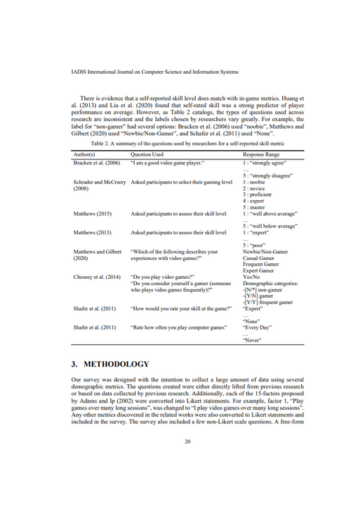 Determine which metric(s) provides a consistent, accurate representation of gamer skill category through examining existing literature and conducting user study.
