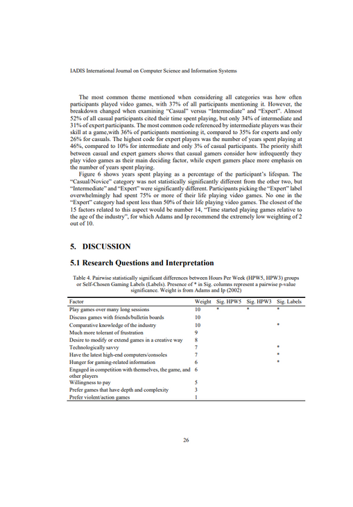 Exploration into hours per week as a metric showed that HPW did have statistical significance with factors explicitly referencing the time spent playing video games, Figures 4 and 5, and nothing else.